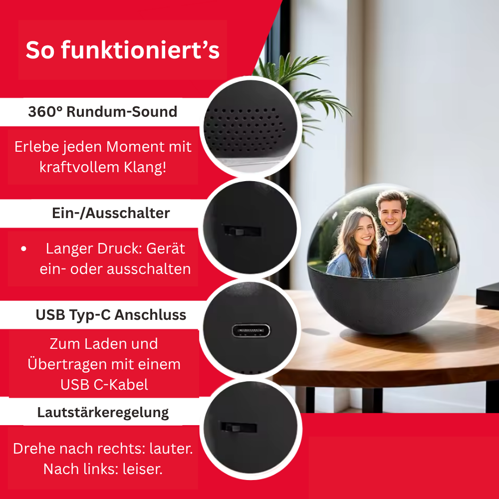 Dieses Bild zeigt den Moment, wenn deine Erinnerungen zum Leuchten gebracht werden: Der VITAVO Memory Ball präsentiert dein Lieblingsvideo in atemberaubender Tiefe – du siehst Bewegungen, erkennst Details, spürst Emotionen. Genau an diesem Punkt entsteht der Wow-Effekt.