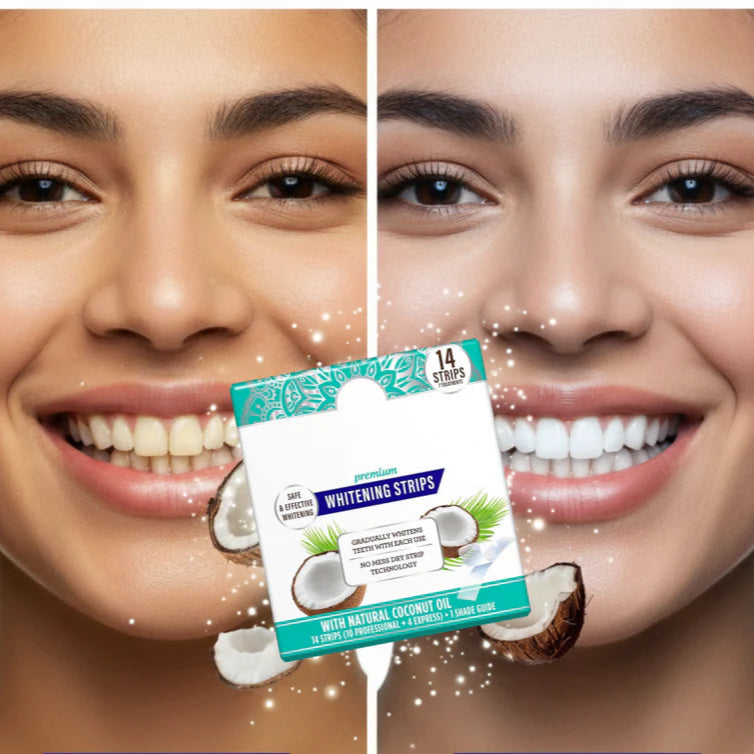Nachher: Strahlend weiße Zähne, beruhigtes Zahnfleisch und ein frischer, sauberer Mund – dank der sanften Kraft von Kokosöl.
